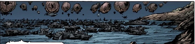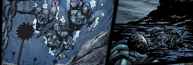 Los refuerzos Locust llegando a la playa luego de que los buzos desactivaran el huracán