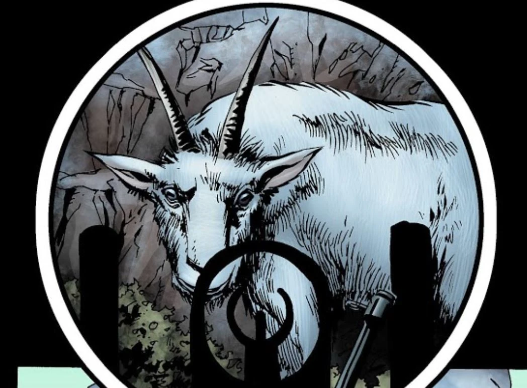Una cabra vista desde la mira de hierro de un rife de cacería