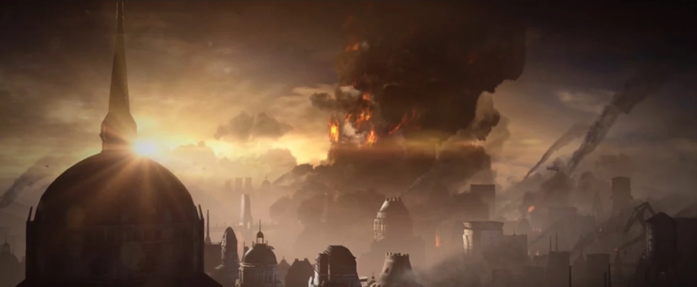 Halvo Bay, después del impacto del Misil de Masa Ligera en el Museo de la Gloria Militar, en un intento de detener a Karn