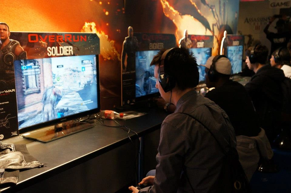 Jugadores probando el modo Invasión en interconexión durante un evento pre-lanzamiento de Gears of War: Judgment
