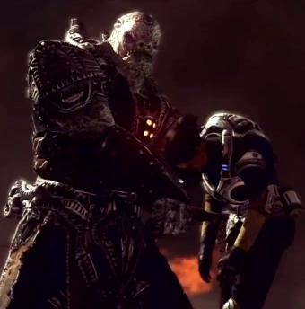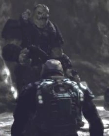 | “ | -¿Entonces quien demonios era ese Locust que gritaba? -Ni idea. El hijo de puta atravesó el tanque. Tiene que ser un pez gordo entre los Locust. -¿Qué? ¿Como RAAM? -Quizás... Pero él hizo que RAAM pareciera un completo idiota. |