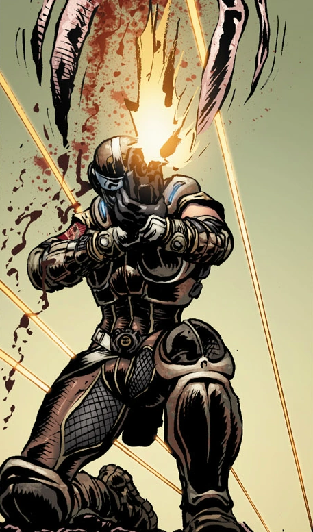 Four months after the Lightmass Offensive, Alex was partnered with Gus during an urban operations battle against the Locust, working with Delta-One to clear the area. After clearing an area of Locust and destroying an Emergence Hole, they moved on to 6th and LaCroix street. Delta-One was ambushed by Locust where Foxtrot had destroyed the E-Hole, and contracted Foxtrot for assistance after they became pinned down by snipers. Alex and Gus rushed back to help, but were unable to reach the snipers because of Tickers, and they did not have any grenades to throw into the sniper nest. Alex decided to climb on top of rubble next to the building the snipers were in, and jumped across as Gus yelled at her to come back. She blew up the Tickers, causing a chain reaction that blew up the sniper nest. As she came down from the building, Gus introduced Alex to the members of Delta, who were surprised to discover she was a women when she took off her helmet and asked for a ride home.[2]