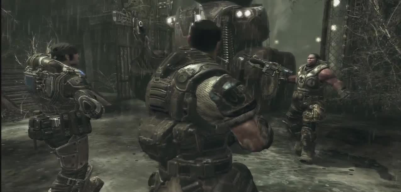 When the vehicle broke down just outside of the facility, Cole and the others walk the rest of the way. After spotting glowing Wretches, Cole became very wary of them. When they discovered the door was locked, Marcus split the squad into two groups: Cole and Baird would go left, while Marcus and Dom went right. Cole thought that splitting up the squad was a bad idea, but Marcus dismissed his concerns, hurting Cole's feelings.[14] They located an entrance through the basement, while Marcus and Dom entered through the roof. Marcus then ordered them to find a way to get the lights on, and locate the Cart Control Room. They restored the power, but in order to continue through the facility, they had to enter the sewer system. Cole took it in stride, and teased Baird about how it was good for his immune system. They passed under a sewer grate and talked with Marcus and Dom for a bit before proceeding on. Soon after, they regrouped with Marcus and Dom, and Cole assured Marcus that the resonator was still in one piece. They fight their way to the cart control room,[15] and each Gear boards a mine cart and heads down deeper into the facility. Cole fights to the drilling platforms with Dom, and they board them and head down into the Hollow.[16]