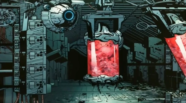 A smiling Gear standing over starving Gorasni soldiers. Note the missing hands.