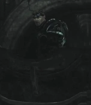 After their vehicle broke down, Baird and the rest of Delta proceeded on foot to the facility. They found the entrance locked, and Marcus sent Baird and Cole left to find an entrance while he and Dom went right. Cole protested, feeling that they should stick together, but Marcus told him that he would take that under advisement, and ordered him to get going. Cole was hurt by this, and Baird told him to come on and follow him to their objective, wanting to get away from Marcus.[28] Baird and Cole found an entrance into the basement, while Marcus and Dom entered through the roof. Marcus then ordered them to find a way to get the lights on, and locate the Cart Control Room. Baird succeeded in restoring power, which he gleefully reported to Marcus. He was surprised when Marcus told them he and Dom found a surviving Stranded, and asked if he could find out if the guy had a geobot, since he needed one to fix the Junker, but Marcus just told him to keep his mind on finding the cart control room. He then warned them to watch the vents, since they kept hearing Wretches in them. To Baird's great discomfort, he and Cole were forced to enter the sewer system in order to proceed further into the facility. They passed under a grate, and spoke to Marcus and Dom, and Baird invited them down as there was plenty of room. Dom and Marcus declined, so Baird and Cole continued on to the cart control room. They regrouped with Marcus and Dom not long after, and Baird told them not to say one word about how they smelled due to the sewer system they passed through. They fought their way through Lambent Wretches, Drones, and Boomers to the control room,[29] where each Gear hops into a mine cart and heads down deeper into the facility. Baird fight alongside Marcus to the drilling platforms, which they board and head down into the Hollow.[30]