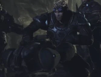 Baird talks with Marcus and Dom after saving them from a Brumak.