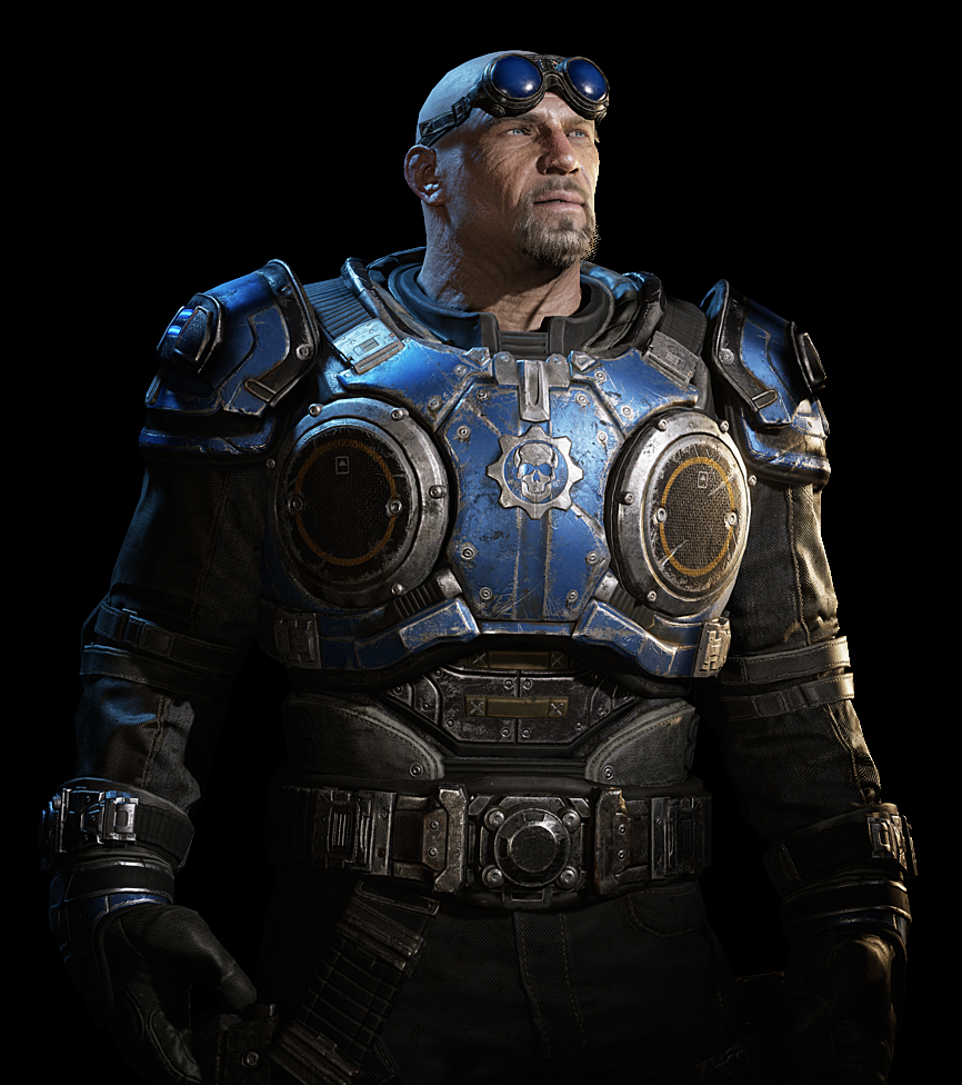 Corporal Damon S. Baird (COG tags CSID 06059-81111-96)[5] is a Gear of the Coalition of Ordered Governments Army and an expert in several technical, mechanical, and scientific fields. He also appears to be an expert in collecting and analyzing Locust weapons, other equipment, artifacts and documents.[6] He joined the COG Army on Emergence Day, and soon after met Augustus Cole, who became his best friend. Fourteen years later, he was a member of Alpha Squad during the Lightmass Offensive, but joined Delta Squad along with Cole after the rest of the squad was killed. After the successful conclusion to the offensive, he was assigned to lead Sigma-One with Cole, taking part in several battles against the Locust. During Operation: Hollow Storm, he once again rejoined Delta, and fought through the campaign to sink Jacinto. He joined the rest of the COG in its evacuation to Port Farrall and later Vectes, where the COG was forced to deal with the Stranded Insurgency, and later the Lambent Pandemic, during which Baird was often on the front lines helping formulate plans with the rest of Delta and Command. When the COG collapsed, Baird joined the rest of Delta aboard the CNV Sovereign as part of the rapid response force that would assist several settlements the remnants of the COG had set up on the mainland.