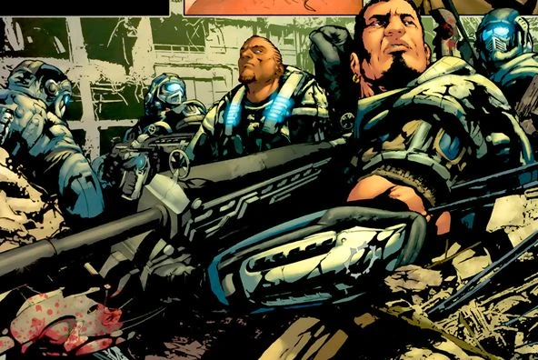 Dom then began reading a joint letter from Marcus and Carlos, who were stationed in Sarfuth with C Company, and Marcus having been recently promoted to Corporal. Carlos complained about how none of the brass listened to Gears on the ground, and were preventing the war from ending quicker, and Dom thought that he would be happier as a commando, since the rules were looser. Dom also noticed that Marcus had begun developing a sense of humor in his writing, and he began to write a letter back to them that would detail what he had learned so far in commando training.[5]