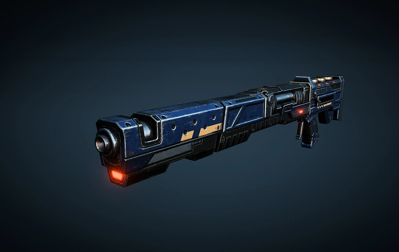 The EMBAR or Electromagnetic Break Action Railgun is a charge-shot, sniper rifle commonly used by Deadeye DeeBees that fire electro-magnetic accelerated rounds that penetrate through enemies, but because they were designed for use by robots, they lack a scope.[1] To mitigate this, Elite Snipers use a cybernetic eyepiece when using captured versions of this weapon.