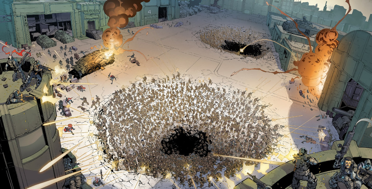 Locust forces invading Jannermont Base.