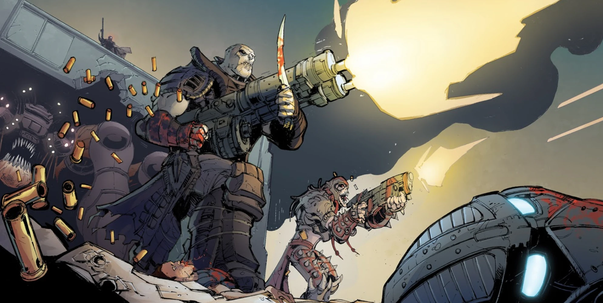 RAAM and Skorge, accompanied by Jermad and a Corpser, on the surface of Jannermont, standing amongst various dead COG soldiers.