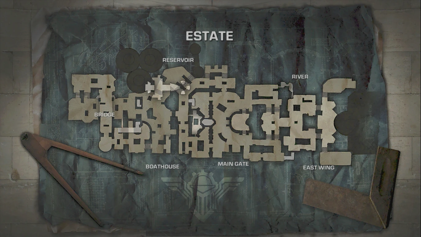 Estate is an OverRun map set on the sprawling lands of one of Halvo Bay's famous mansions. The riverfront location and night time setting make it all the more vulnerable to Locust invasion. The invading Locust team can cross the river on a bridge that leads to a small but heavily defended landing, or - since the tide is out - they can funnel straight up the muddy riverbed. The two paths actually cross over at a couple points, making this one of the more unique and complicated objectives of all the OverRun maps.[1]