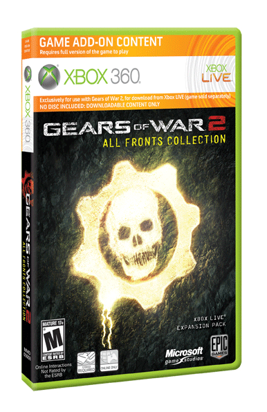 Gears of War 2: All Fronts Collection is the name of the single and multiplayer content combination pack released by Epic Studios on July 28th, 2009.[1] It will retail for $19.99 US or as DLC (Only Dark Corners) for 1200MS points.