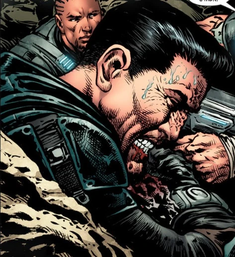 As they continued to drive back to Jacinto, they picked up a distress beacon. When they went to check it out, they found an abandoned camp with no one around. Marcus realized it was a trap, Locust emerged and began firing on the Gears. As they moved to take cover, Gil was shot in the shoulder when he was unable to get down in time and exposed himself to fire. Jace dragged him to safety, and attempted to stop the bleeding. He gave Gil a cloth and told him to apply pressure to the wound. Gil tried to hold the cloth to his wound, but found it difficult as he came under heavy fire and Jace was forced to divert his attention away from him. As the battle was winding down, Locust reinforcements arrived, and a Boomer destroyed their cover with a Boomshot.[3] As Barrick covered them, Jace attempted to carry Gil to new cover, but he had lost too much blood, and died in Jace's arms as the last of the Locust were killed.[2]