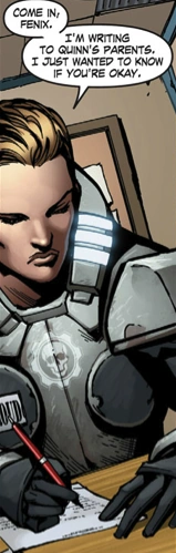 Nine days into the deployment, Helena had lost two Gears to Indie raids: Cpl. Maxon was killed in a nighttime firefight, and Quinn was shot in the head by a sniper. Helena began writing a letter to Quinn's parents, and called Marcus in to see her. Both Maxon and Quinn had been in his squad, and she was worried he would beat himself up over their deaths like his father did. She asked him if he was okay, and he said he was not sure how anybody could be okay after seeing one of their friends dying in their first week of deployment. Helena told him not to beat himself up over their deaths, and Marcus said he would get used to it. She told him he would not and should not, and that they all had to learn their own way to deal with death. She remarked that Adam had decided to leave and build weapons to try and end the war as his way, and Marcus remarked that he understood that a lot better now. Helena ordered him to call Adam, telling him that it was not good to leave things unsaid, because you never knew if you would get another chance to say them.[12]