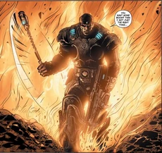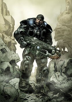 Sergeant Marcus Michael Fenix ES is a formerly retired Gear soldier in the Coalition of Ordered Governments army. A legendary war hero, Marcus served with distinction in the Pendulum Wars, which earned him the Embry Star, the COG's highest military award, for his actions during the Battle of Aspho Fields. He is also a convicted "coward" for his actions at the Battle of Ephyra. Like the rest of humankind, he saw everything change on Emergence Day. Marcus bravely fought against the Locust for ten years until the Battle of Ephyra, where he abandoned his post to rescue his father, Professor Adam Fenix, but could not reach him in time. With his father presumed dead, Marcus was tried for dereliction of duty and sentenced to 40 years in Jacinto Maximum Security Prison. He was incarcerated for four years before being released by his longtime friend, Dominic Santiago. Marcus was later promoted to replace Lt. Minh Young Kim after the squad leader's death. Along with the rest of Delta Squad, he successfully detonated the Lightmass Bomb and destroyed much of the Locust Hollow. With his reputation restored, Marcus continued fighting against the Locust, culminating in the Sinking of Jacinto. After the COG moved to Vectes, Marcus fought against Stranded insurgents and the rising threat of the Lambent. After the COG collapsed under the constant struggle to survive, Marcus and the rest of Delta banded together with other Gears and civilians aboard the CNV Sovereign, seeking a way to survive in the new world. Eighteen months later, Chairman Prescott returned with the startling news that his father was alive. Marcus led humanity to victory over the Locust and the Lambent, but was at a loss of what to do next after losing both his father and Dom along the way. He was married to Anya Stroud who gave birth to his son James Fenix. Twenty-years after the end of the Locust War, Marcus came out of retirement when the Locust reemerged as the Swarm. Although briefly an enemy of the state, Marcus is later pardoned and is officially reinstated into the COG army.