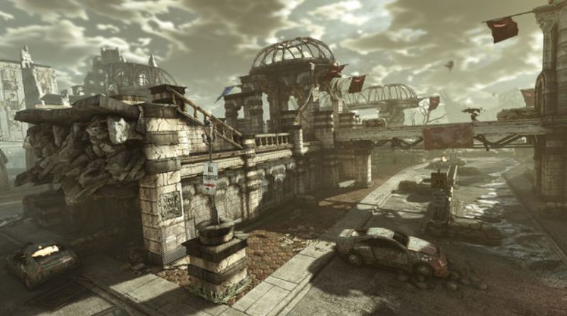 Overpass is a new multiplayer map featured in Gears of War 3. It takes place on an abandoned overpass in sinking Jacinto, and has many map dynamics involving this series of events, as more and more of the map is submerged as time goes on. This map is notable for having the new Multi-Turret on it, revealing that it will appear in multiplayer. It was revealed in the June Issue of Game Informer along with the Thrashball Arena.