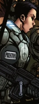 In the 80th year of the Pendulum Wars, Preston and the rest of C Company were fighting in the Independent Republic of Furlin when they heard over the radio that the Union of Independent Republics was going to surrender to the Coalition of Ordered Governments. The Gears began celebrating, but came under attack by Indie mortar fire. Preston and the others began returning fire, and Preston told Sgt.Marcus Fenix that the captain was trying to offer a temporary ceasefire to the Indie commander, who was skeptical that the surrender was real. Marcus told her he doubted that would work, but the Indie commander received word that the surrender was true, and he and his unit surrendered to C Company.[1]