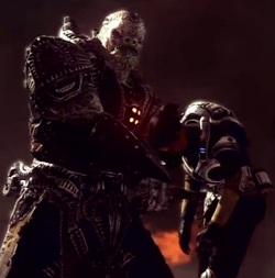 Uzil RAAM was the High General of the Locust Army. RAAM was once a Drone soldier, then a member of the Theron Guard. His skill, intellect, strength, and his loyalty to the Horde and Queen Myrrah earned him the title of head of the military leadership of the Locust Horde. RAAM led the Bloodied Vanguard with Skorge against the Lambent durning the Lambent War. [1] He was also a member of the Locust Council durning the Lambent War. RAAM had a passion to wipe out all of the Lambent and Humanity, and with his intelligence and willpower, he almost succeeded.