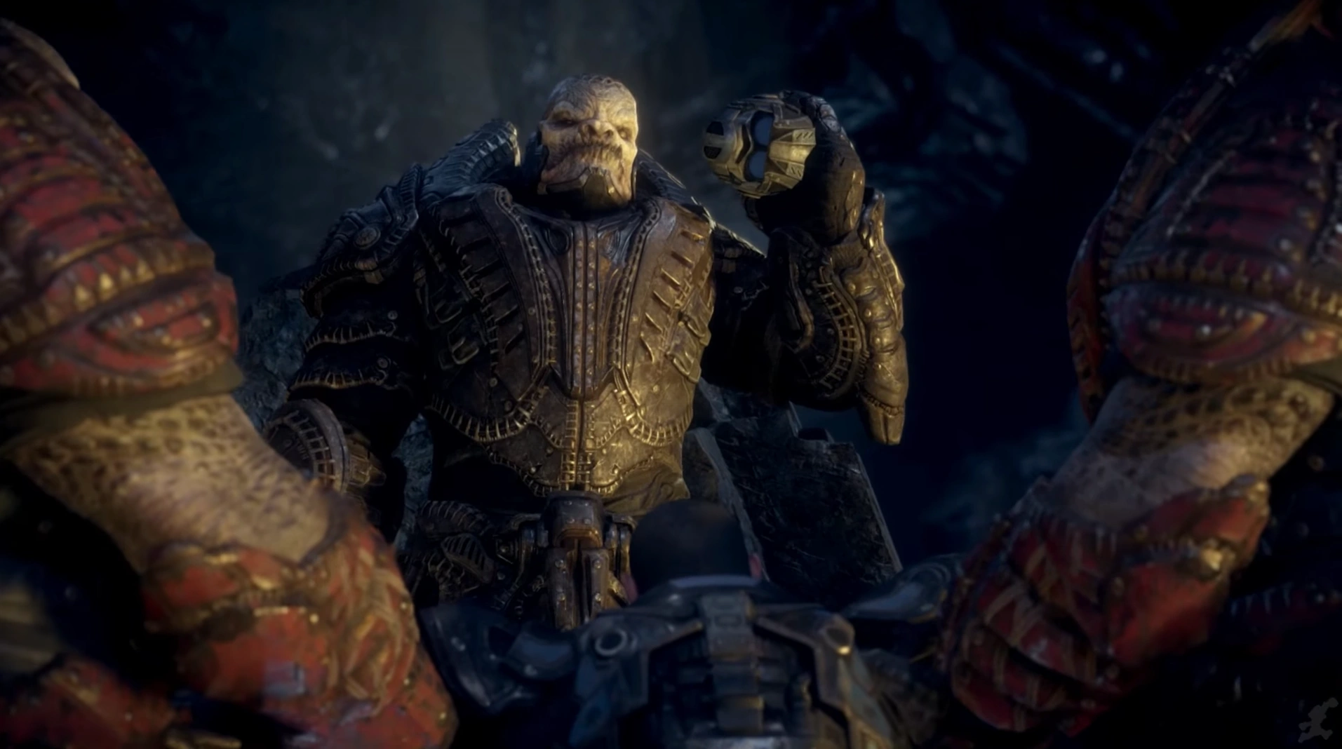 When regular means cannot kill the Corpser, which uses it's legs as a shield, RAAM orders their troops to open fire on the beast's legs, with Boomers finally managing to destroy them and crippling the beast. While RAAM kills the Corpser, Skorge laments that Sraak did not possess the intelligence to give the Corpser armor, leading them to realize he had help from Ukkon, the head scientist. Despite realizing they now had little to no chance of convincing the queen now, RAAM is undeterred, and after giving yet another speech to his soldiers, reveals his plan to involve Karn and Ketor Vrol, high priest of the Kantus, in their plot. Though now Skorge snaps, accusing RAAM of being out of his depth due to being a pariah like Skorge, and questions RAAM on how he expects Vrol to listen to Skorge when even he doesn't believe in the latter's gift of prophecy. RAAM reaffirms Skorge that he is the only one capable of the task and manages to convince him to talk to Vrol. All the while the two are unaware that the Locust council, including Queen Myrrah were listening in on their conversation.