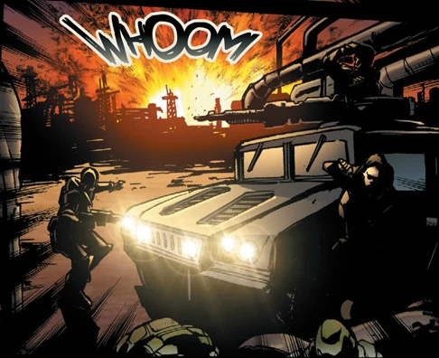 Two days later, the UIR sent special forces units to sneak into Acastu and sabotage the wells and pipelines. They placed explosives at the wells, but as they attempted to sabotage the pipelines, they were discovered by a Gear squad led by Cpl.Maxon after a driller reported hearing a noise. The two groups entered into a firefight, and the COG forces called for reinforcements. Maxon was hit by Indie fire, and Pvt.Quinn attempted to stop the bleeding while Pvt.Marcus Fenix charged the Indies under covering fire from Pvt.Carlos Santiago. He took down two Indie troops, and a Packhorse driven by Sgt.Bernadette Mataki and gunned by Sgt.Daniel Kennen arrived and took out three more. The Indies detonated the charges they had placed on the wells, and retreated from Acastu. Maxon was taken to a medical station, but died from his wounds. Firefighters put out the blaze at the Imulsion wells, which were repaired in a few days, and production was not affected. The raid was later reported on the news over the radio.[2]