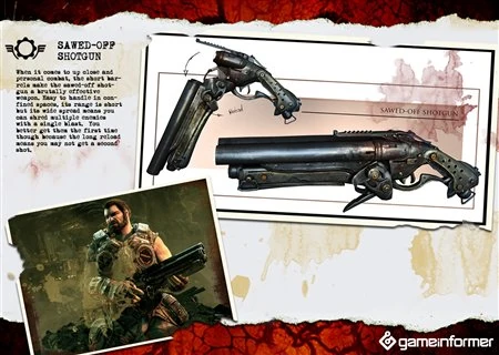 - Ron Ferguson stated in his Gears of War 3 Q&A that the Sawed-Off Shotgun was for new players, or players who aren't good using the Gnasher.