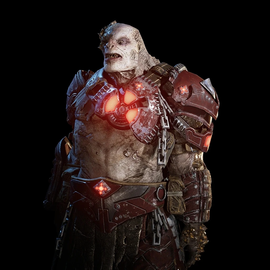 The Speaker was once a Drone in the Locust Horde who lived and fought during the Lambent War and Locust War. Due to his imposing size and ability to speak fluent Tyran, he was a Locust of major importance, most likely a Theron Guard.