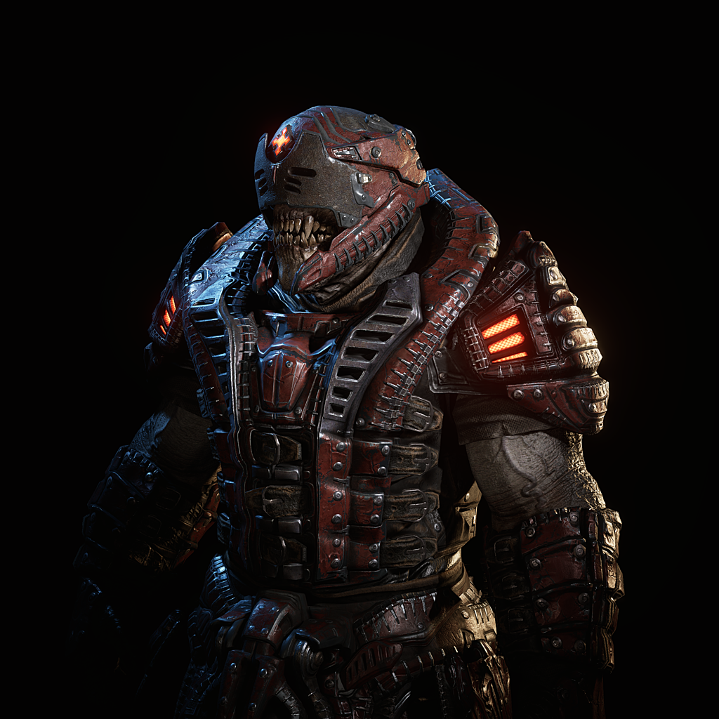 The Theron Guard was an organization of the Locust Hordes' military which represents the elite of the Locust, the head-and-shoulders above the lowly Drones in terms of equipment, intelligence, and training. They are elite Locust troops, assigned to commando-style raids against high-profile targets and high-level defensive missions that require the sort of precision the Therons possess and can handle. Some members of the Theron also act as field officers, leading the lesser Locust troops into battle. If the Drones and Boomers represent the Locust military's hammer and anvil, then the Theron Guard is most decidedly its scalpel.
