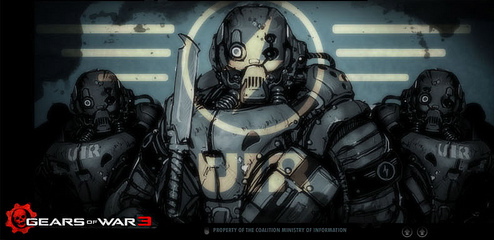 - The UIR troops seen in the Gears of War 2 opening cinematic wore armor that looked similar to the Gears standard issue armor but was black instead of blue, and seemingly had slightly different helmets.